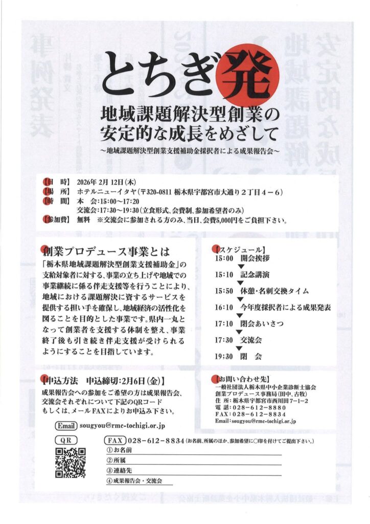 令和7(2025)年度創業プロデュース事業※(公財)栃木県産業振興センター委託