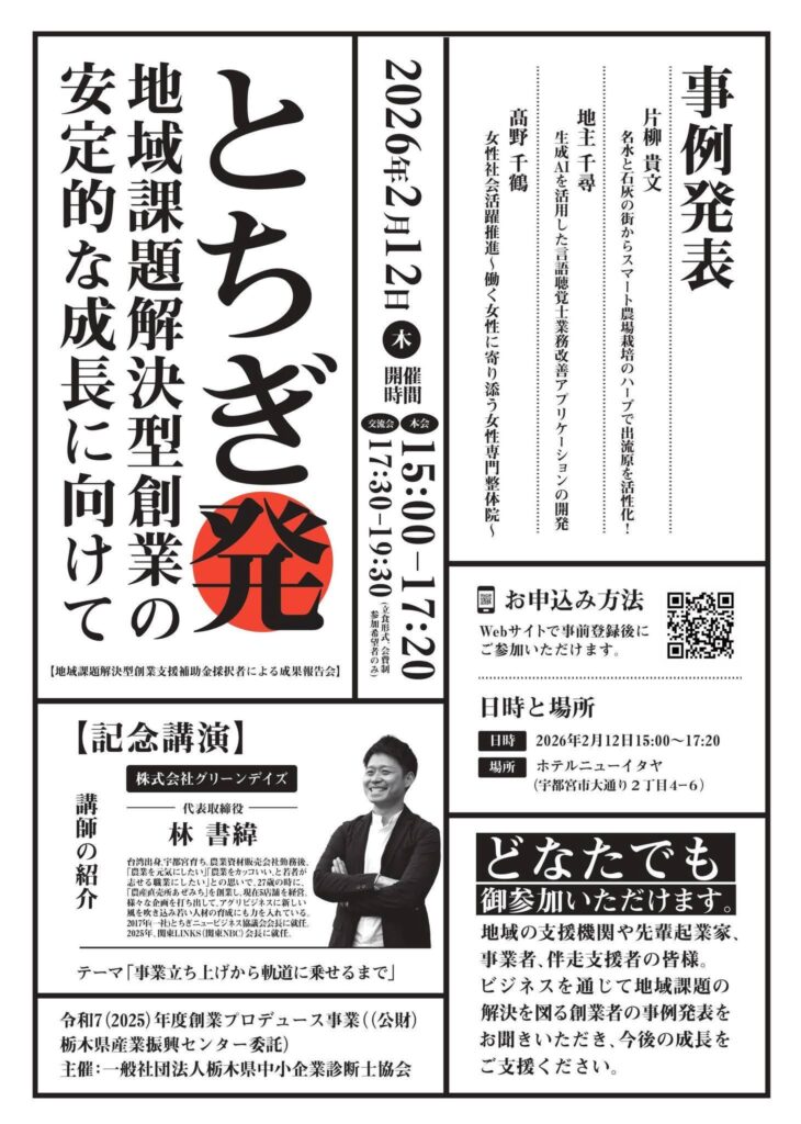 令和7(2025)年度創業プロデュース事業※(公財)栃木県産業振興センター委託